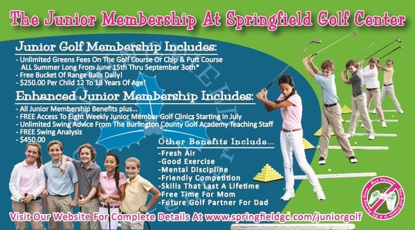 The Junior Golf Membership/Enhanced Junior Membership at Springfield Golf Center is intended for junior golfers age 12 thru 18 years of age, that have a basic understanding of golf, can demonstrate a competent ability to play golf, and a desire to improve that knowledge, understanding, and ability. This affordable membership is an excellent way to foster your child's early interest in a game that will last his or her life time!